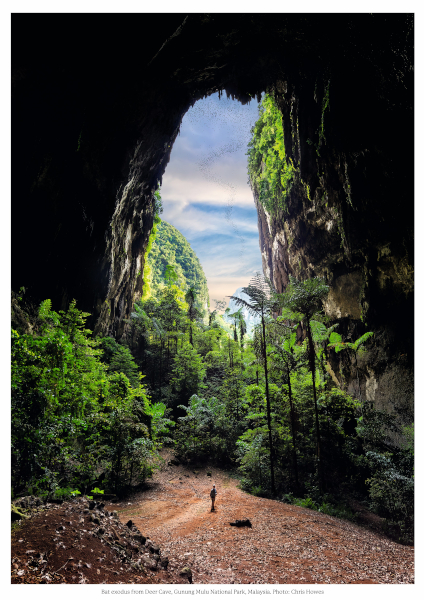 The caves of Mulu are among the most spectacular in the world. Deer Cave is an immense tunnel through the mountain, with a ceiling far above and natural light permeating almost its entire length. Millions of bats roost inside and, as nightfall approaches, emerge from the entrance in an endless swirling mass.