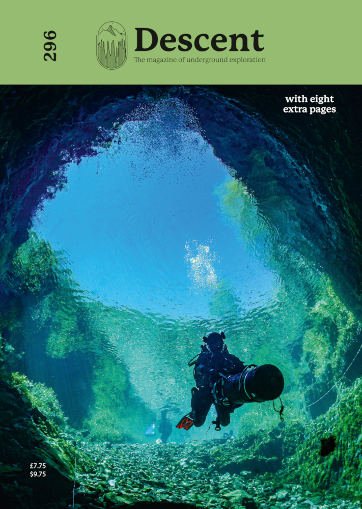 And while there were amazing images to be captured deep inside the cave it was a quiet and more relaxed day that was to yield this, the Descent cover shot. It all seemed so appropriate that a simple picture of Mel Dalby, cruising gracefully from sunlight towards the shadowy depths, should set the scene for the most audacious underground exploration.