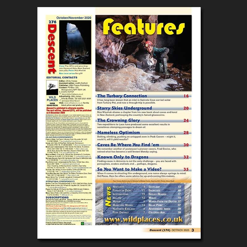 Cover: The 187m entrance drop into Harwood Hole, New Zealand. Photo: Max Wisshak